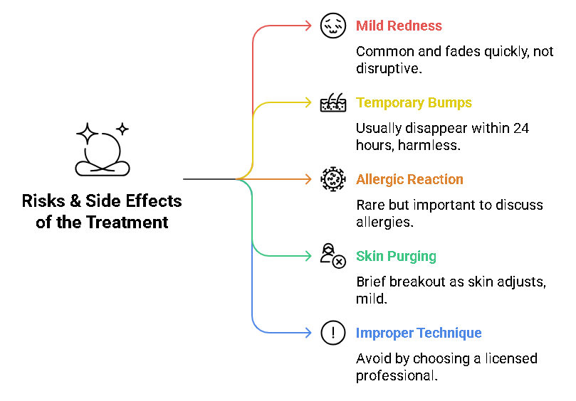 If the treatment clears out clogged pores, you might experience a brief breakout. This is rare and usually mild, resolving as the skin adjusts.